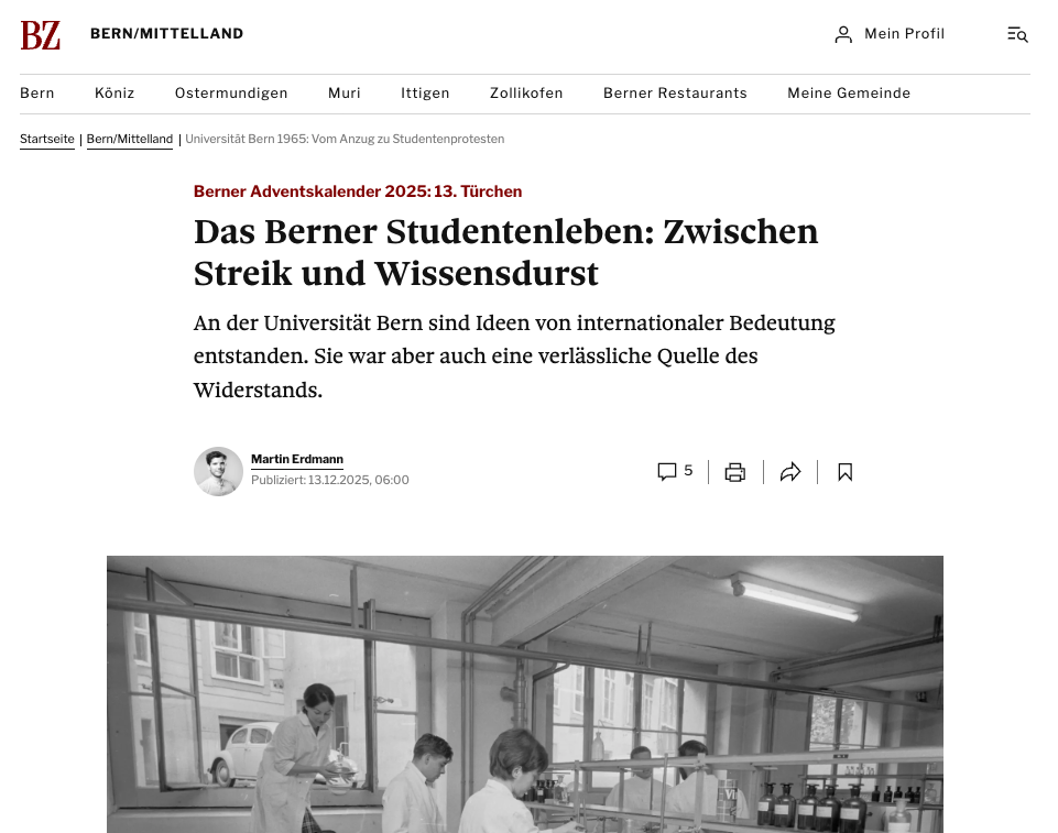 Bildstrecke im Rahmen des «Berner Adventskalenders» mit Aufnahmen des Alltags an der Universität Bern aus dem 20. Jahrhundert.