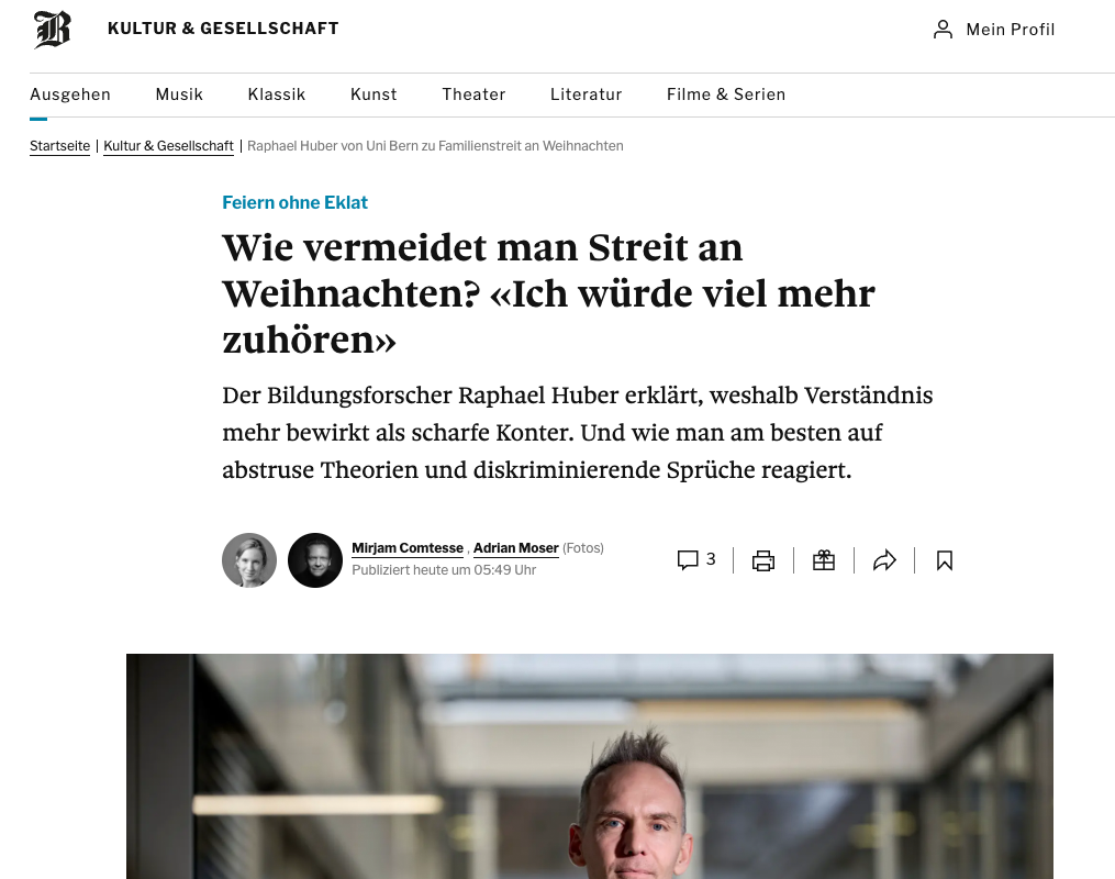 Interview mit Dr. Raphael Emanuel Huber vom Institut für Erziehungswissenschaften an der Universität Bern über den richtigen Umgang mit Menschen, die extreme Meinungen vertreten.