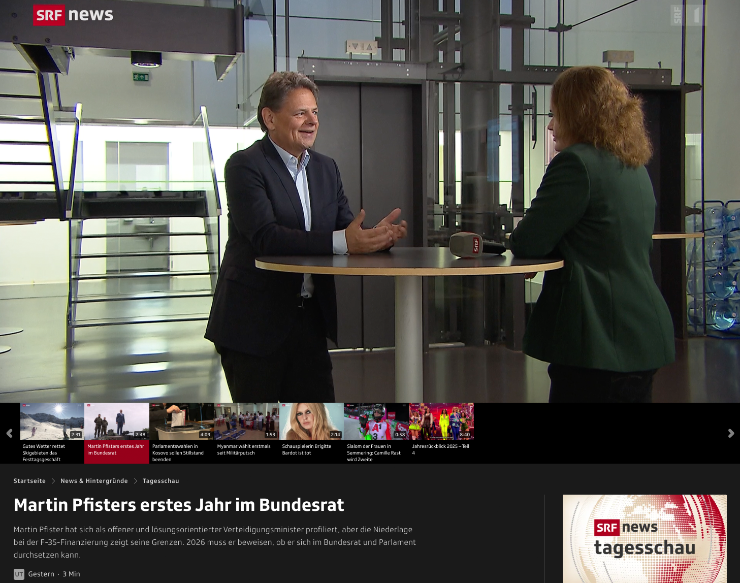 Videobeitrag über das erste Amtsjahr von Bundesrat Martin Pfister. Dazu äussert sich Prof. Dr. Adrian Vatter vom Institut für Politikwissenschaft (IPW) der Universität Bern.
