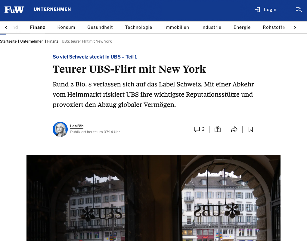 Teurer UBS-Flirt mit New York