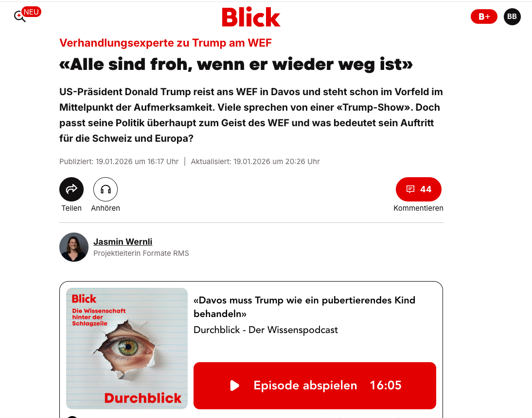 Gespräch mit Prof. Dr. Manfred Elsig vom World Trade Institute der Universität Bern über die Rolle von US-Präsident Donald Trump am Weltwirtschaftsforum (WEF) in Davos.