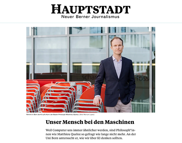 Artikel darüber, dass Matthieu Queloz vom Institut für Philosopie der Universität Bern untersucht, wie Künstliche Intelligenz begrifflich und philosophisch eingeordnet werden soll. Der Beitrag beleuchtet seine durch den Schweizerischen Nationalfonds geförderte Forschung.