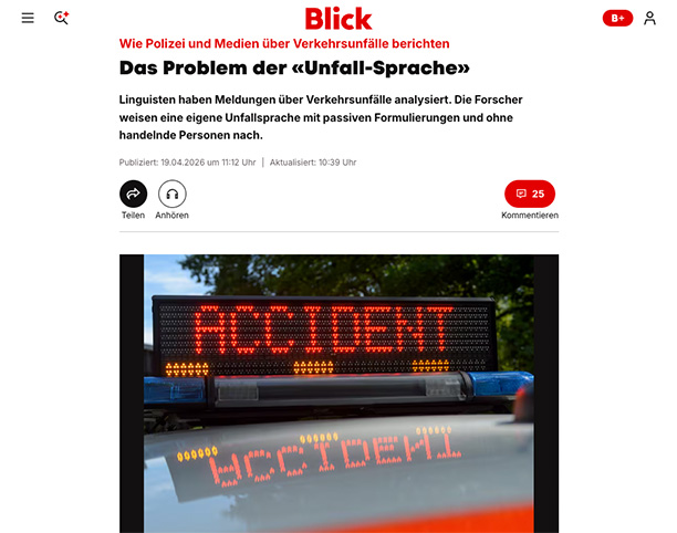Artikel darüber, dass Polizei und Medien Unfälle häufig mit passiven Formulierungen als schicksalhafte Ereignisse darstellen würden, statt handelnde Personen und Verantwortlichkeiten klar zu benennen. Dazu äussert sich Dr. Hugo Caviola vom Centre for Development and Environment (CDE) der Universität Bern.
